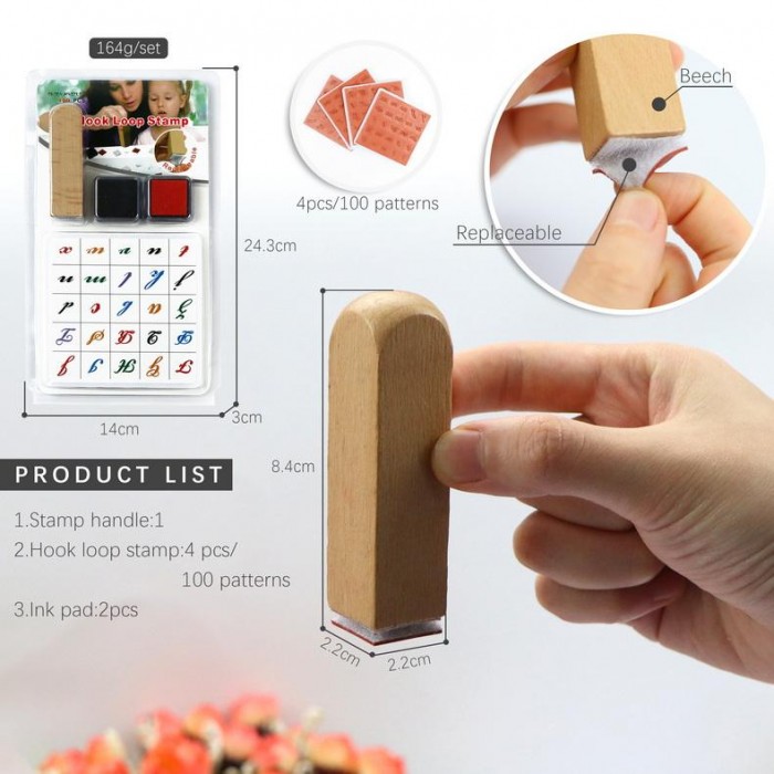 » Custom Alphabet Number Wooden Rubber Stamp Set for Kids Educational