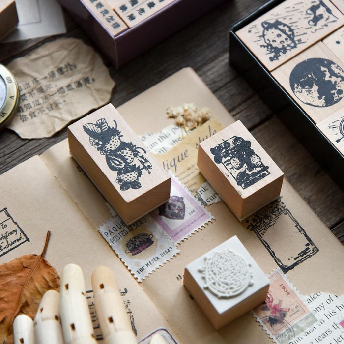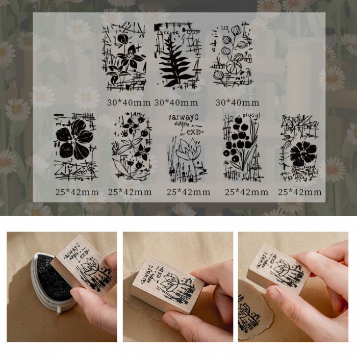 - > Stamps > Vintage Text & Floral Wooden Rubber Stamps Set for Card Making & DIY Crafts