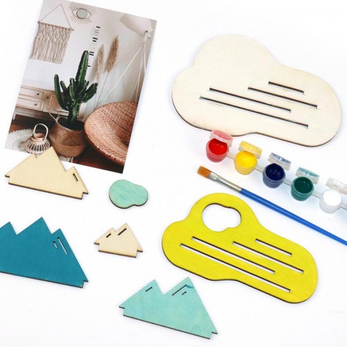 > 3D DIY Wooden Mountain Painting Kit | Unfinished Wood Craft for Desk Decor